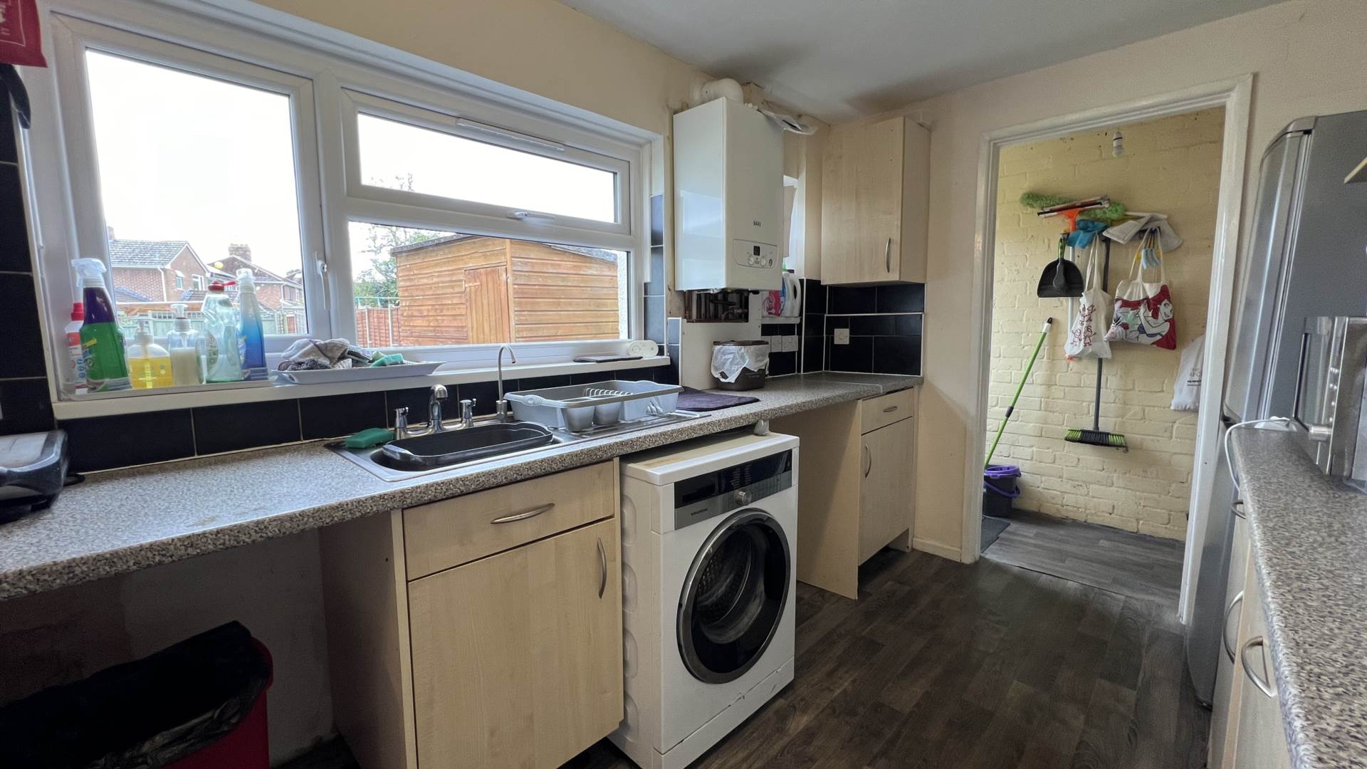 Kitchen with plenty of base and wall units with work top over and inset sink and drainer with mixer tap over. uPVC double glazed window to the rear aspect. Under counter space and plumbing for appliances. Opening to rear porch and study. Wall mounted 2019 combi boiler.
