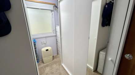 Modern fitted kitchen with matching range of wall and base units, tiled walls with uPVC double glazed window to the side aspect. Rolled edge worktops with sink and drainer unit inset. Oven and hob with extractor fan over, space for appliances including; fridge freezer, dishwasher and washing machine. (the appliances in the property will stay)